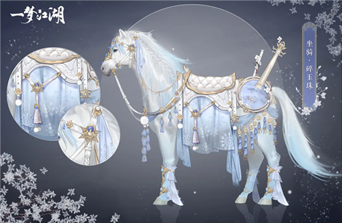 高自由度武侠手游《一梦江湖》冬季特典版本“北望天狼”即将来袭!在这个全新版本中,白鹤入天,坐骑·碎玉珠通体缀满金饰,融入对春日花开的期盼 ,裙摆处点缀的玉兰花纹更增灵动俏皮,前往寒风冷冽的西北,白色的扇面上两只白鹤直入云霄,微卷的前发增添了一丝浪漫的气息,虽冰凉晓风拂面 ,奔跑时流苏与蓝色薄纱更显灵动飘逸
